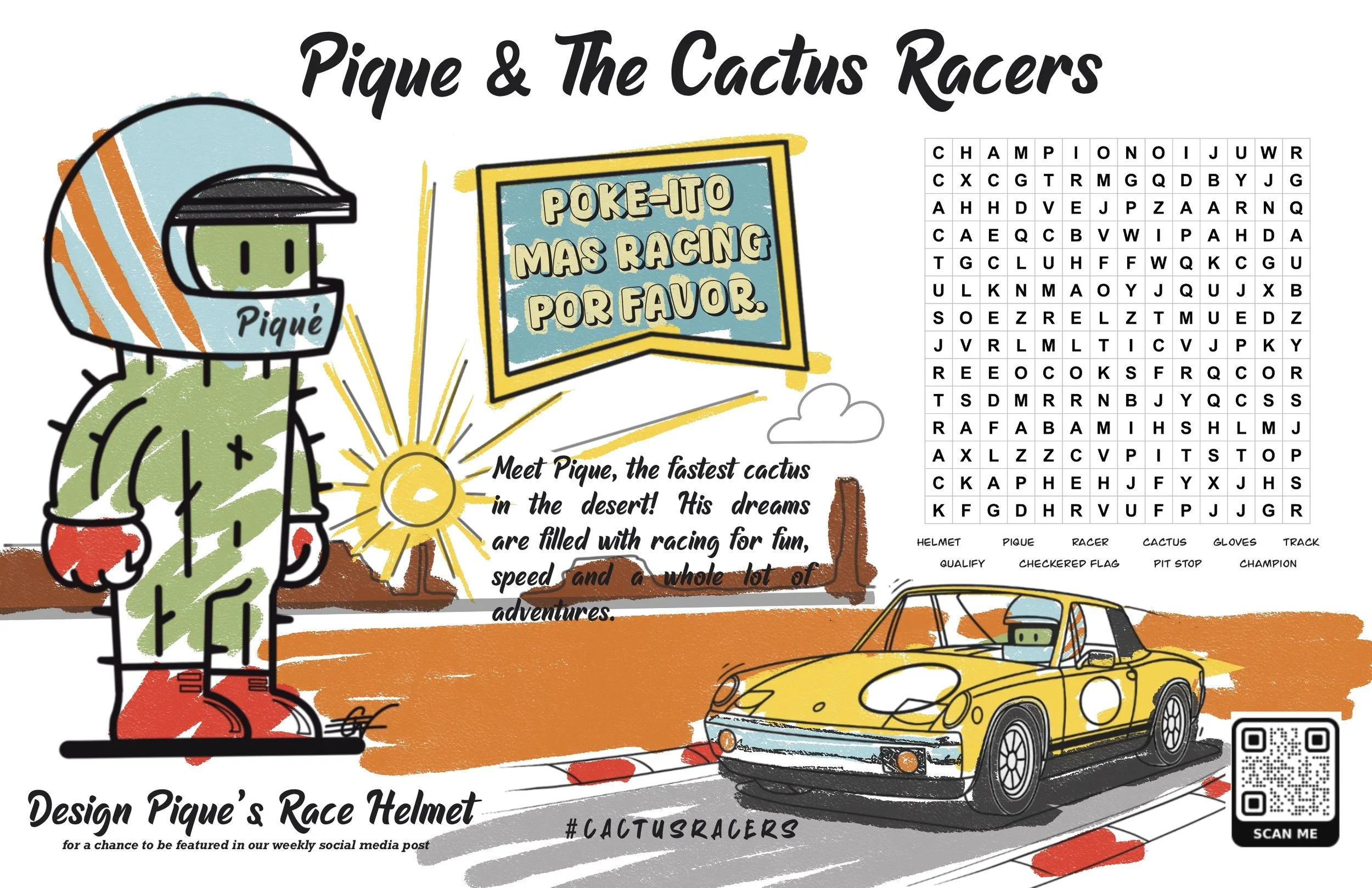 Shop The collection ¡POKE-ITO MAS RACING POR FAVOR! PINS COMING SOON Activity Pages Categories: Select a Category Activity Pages Pins FREE: Gruppe Chat Kids Night Coloring Page $0.00 FREE: Piqué Cactus Racer Activity Placemat Summer 2025 $0.00